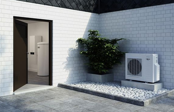 L’installation de ce type de pompe à chaleur ne nécessite pas de travaux importants. L’unité extérieure peut être placée n’importe où à l’extérieur de votre logement et requiert très peu d’espace au sol.